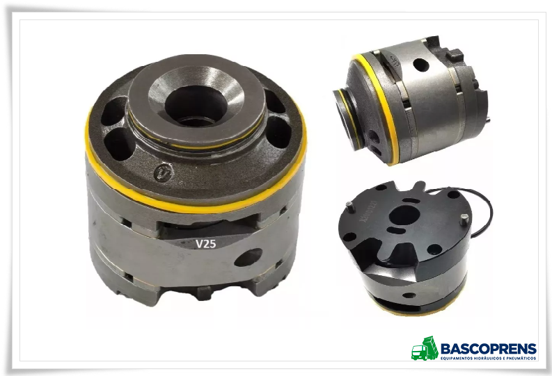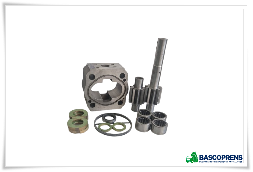 Corpo / Vedação / Engrenagens / Placa de encosto / Anéis de Bronze / Rolamentos de rolete .